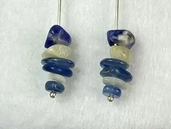 These earrings have been designed to promote emotional balance, with emphasis on the throat and brow chakras, the Mind, Spirit and the Emotions. They have been made using 26cm (1.4 grams) of Sterling silver, set with 6 pieces of Blue Kyanite, 4 pieces of White Moonstone, and 2 pieces of Sodalite; and are finished with flowing waves of silver. The waves and crystals have been symmetrically balanced and aligned to enable the left/right sides of the brain to function harmoniously.