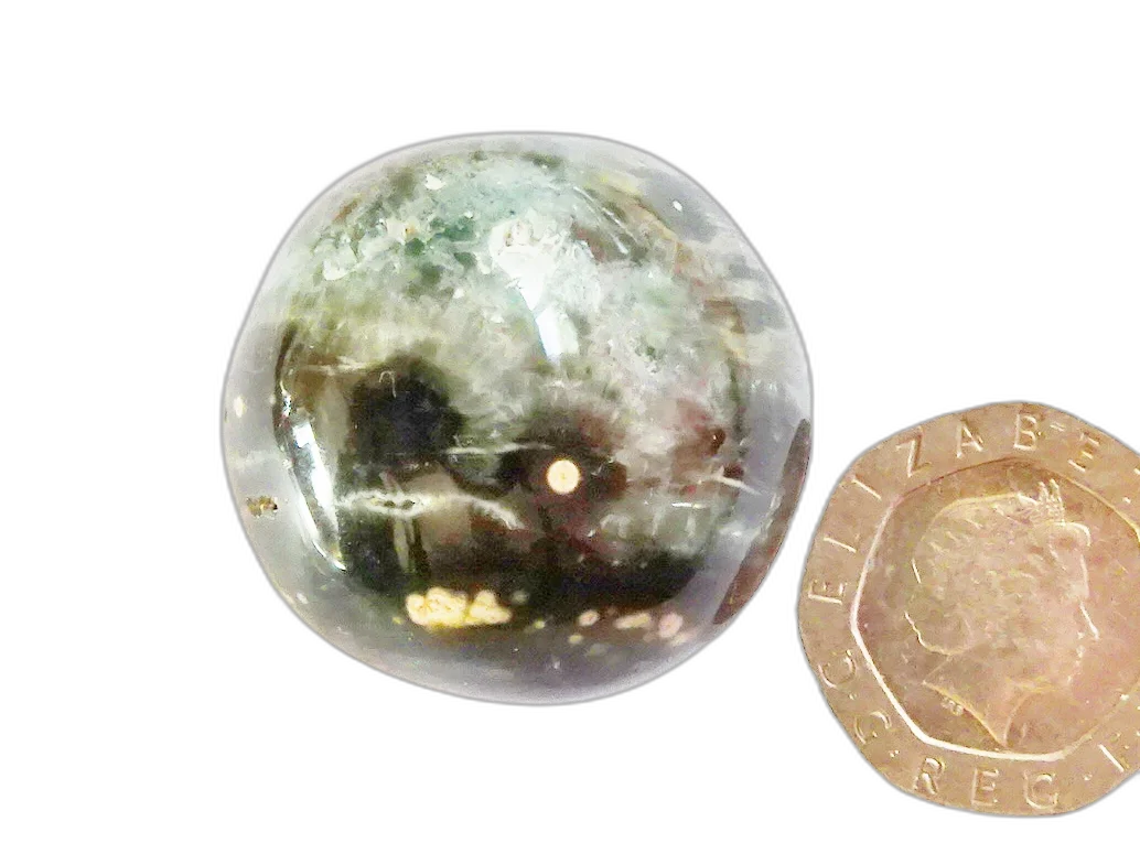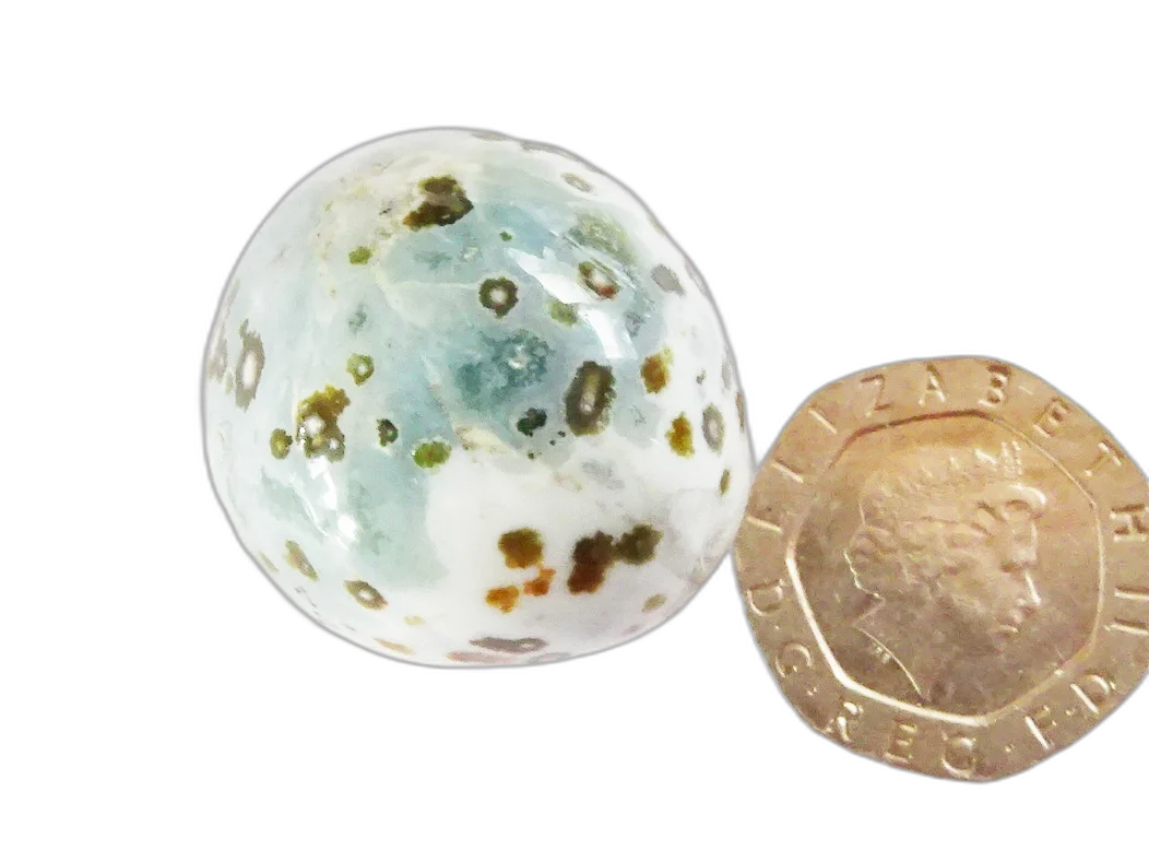 Pretty polished pebble of Ocean Jasper, in the rarest shades of green, with some lovely drusy cavities. Ocean Jasper is a stone of hope and unlimited ecstasy and courage. It clears, cleanses and lifts the spirits and is a breath of fresh air for the heart, leaving a sense of positivity and gratitude in its wake.
