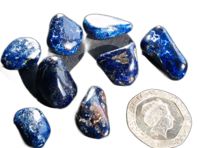 Picture shows EXAMPLES of our stock of Azurite (with traces of Shattuckite) polished pieces . You will receive one of minimum weight 3 grams.