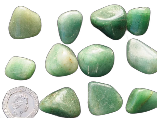 Picture shows EXAMPLES of our stock of Green Aventurine tumbled stones. You will receive one of minimum weight 4 grams.
