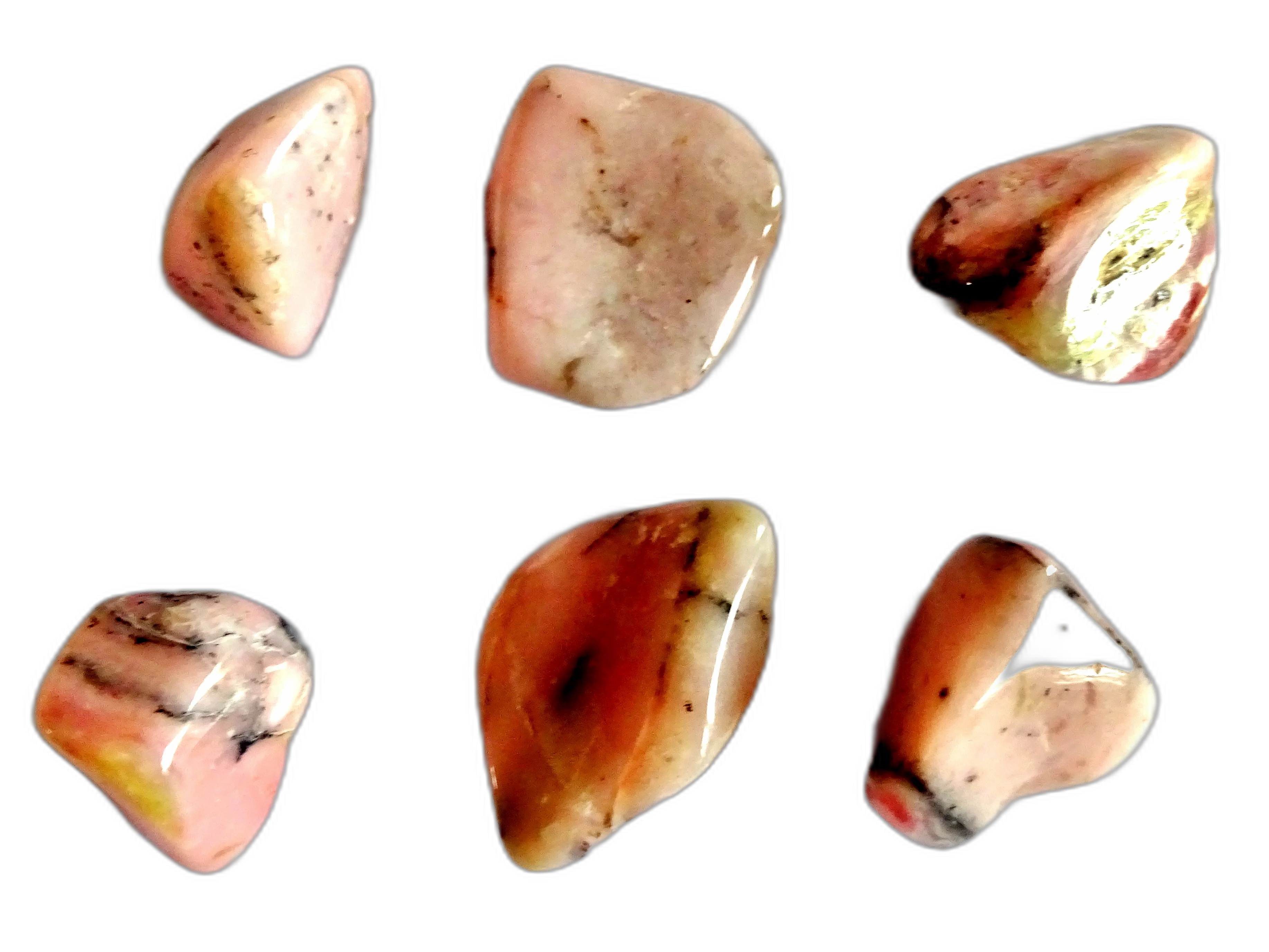 Picture shows EXAMPLES of our stock of B grade Pink Andean Opal polished pieces. You will receive one of minimum weight 7 grams. Pink opal is a stone for the heart and for the emotional body. It has a soft and gentle energy that nonetheless can get right to the root of any emotional upset, and then help calm and soothe it. Pink opals also help us allow ourselves to be loved and to be more kind and forgiving to ourself if we are overly self-critical.
