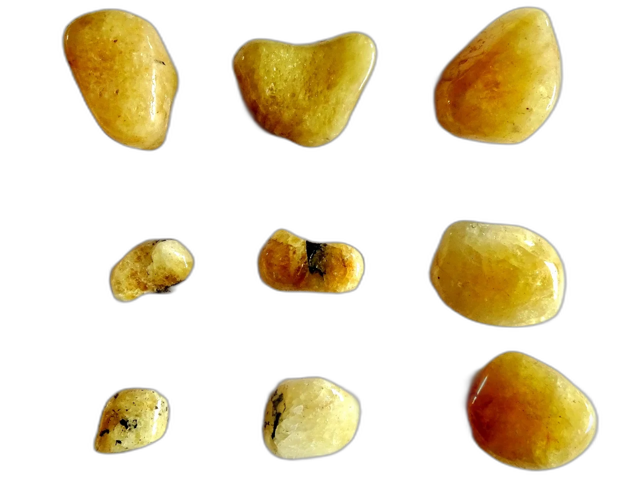 Picture shows EXAMPLES of our stock of Heliodor tumbled stones. You will receive one of minimum weight 7 grams.