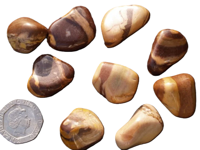Picture shows EXAMPLES of our stock of Bruneau (Cappuccino) Jasper tumbled stones. You will receive one of average weight 7 grams.