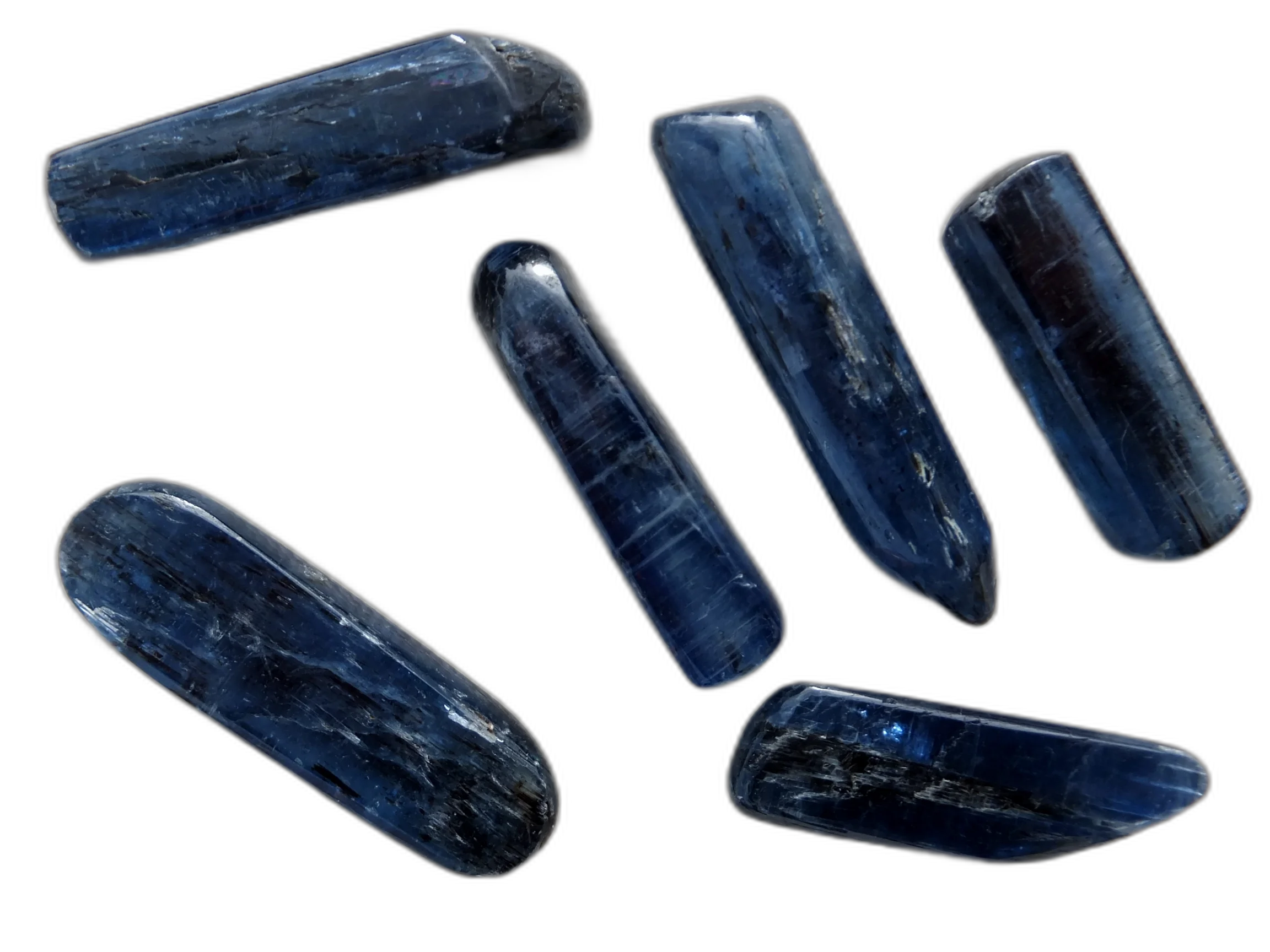 Picture shows EXAMPLES of our stock of Indigo Kyanite polished blades. You will receive one of minimum weight 3 grams.