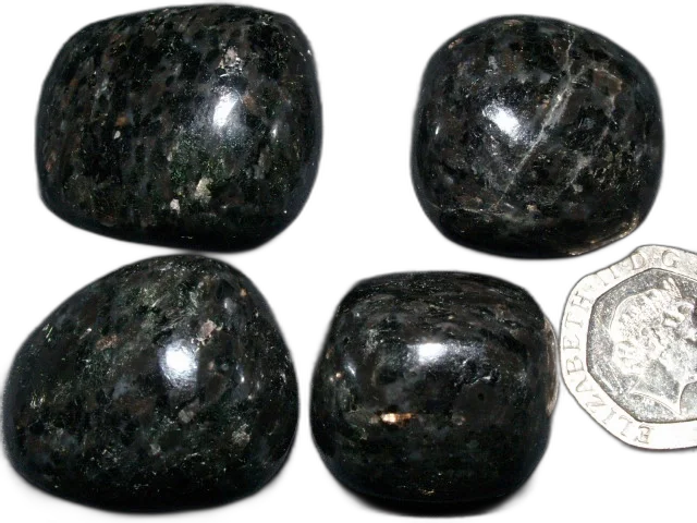 Picture shows EXAMPLES of our stock of Nuumite polished pieces. You will receive one of minimum weight 20 grams.