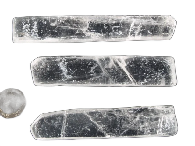 - Selenite: Clear - flat wands.