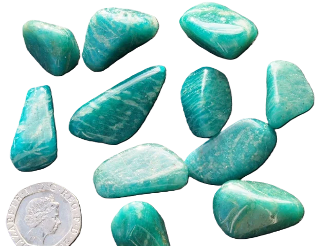 - Amazonite - Blue-Green (pale): tumbled stones