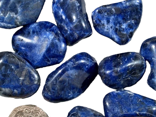 - Sodalite (dark): tumbled stones