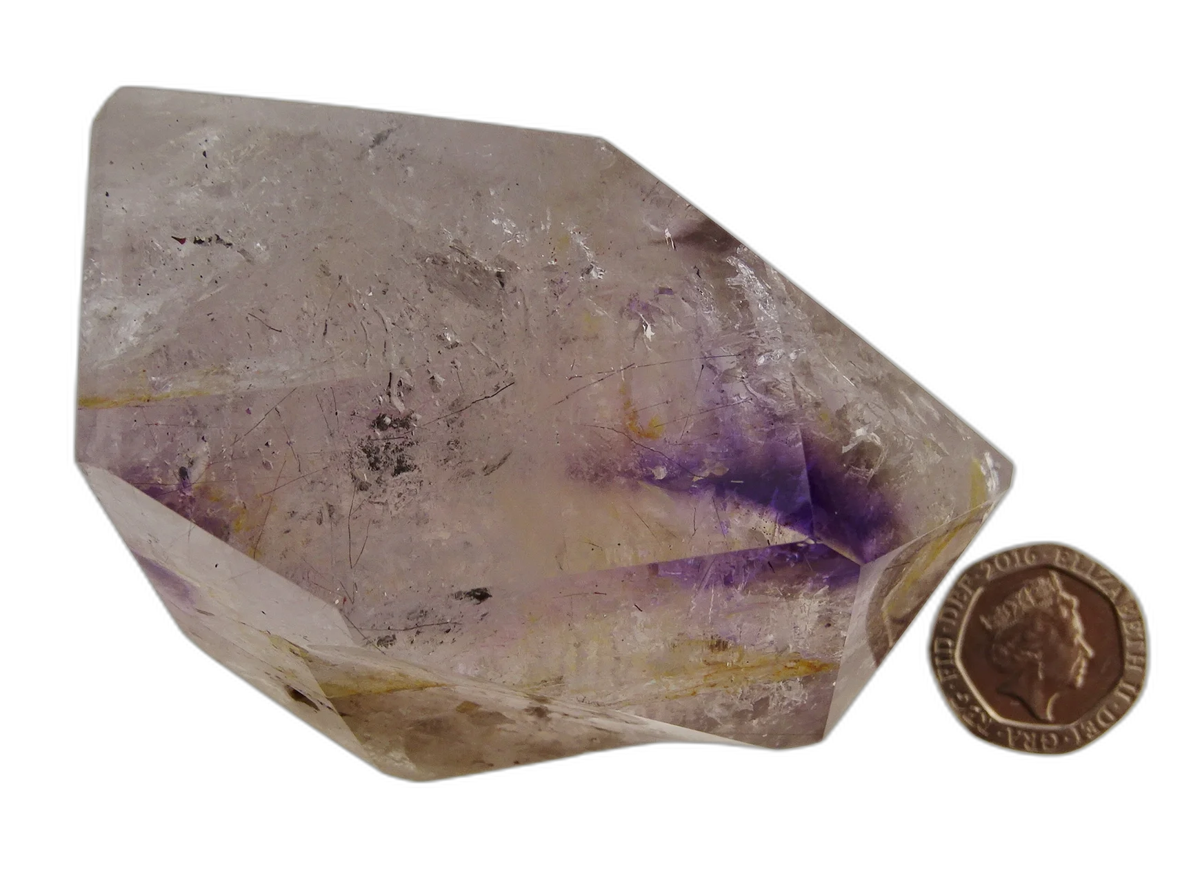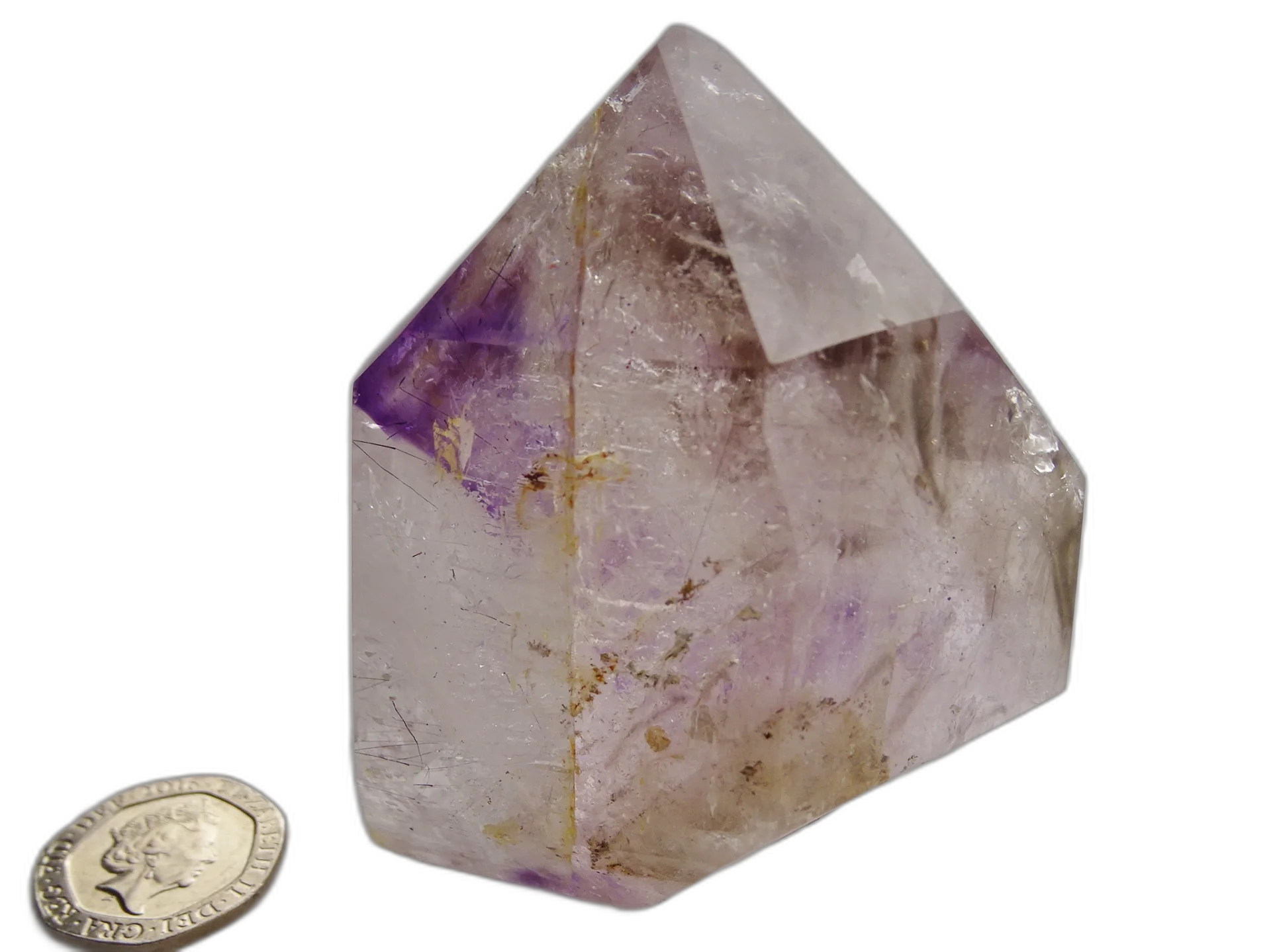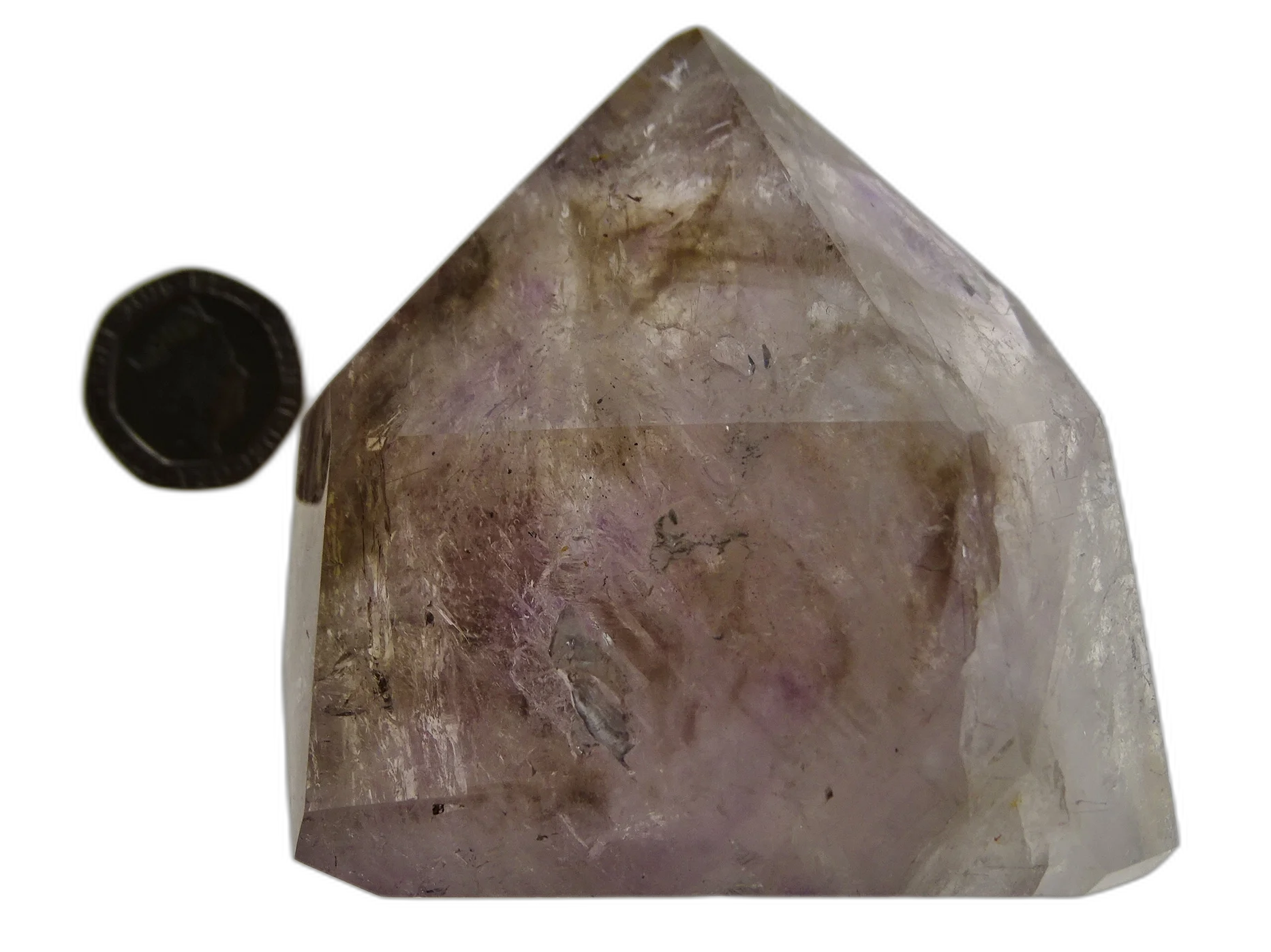 - Amethyst / Smoky Quartz: polished point - Enhydro Phantom (Mad.)