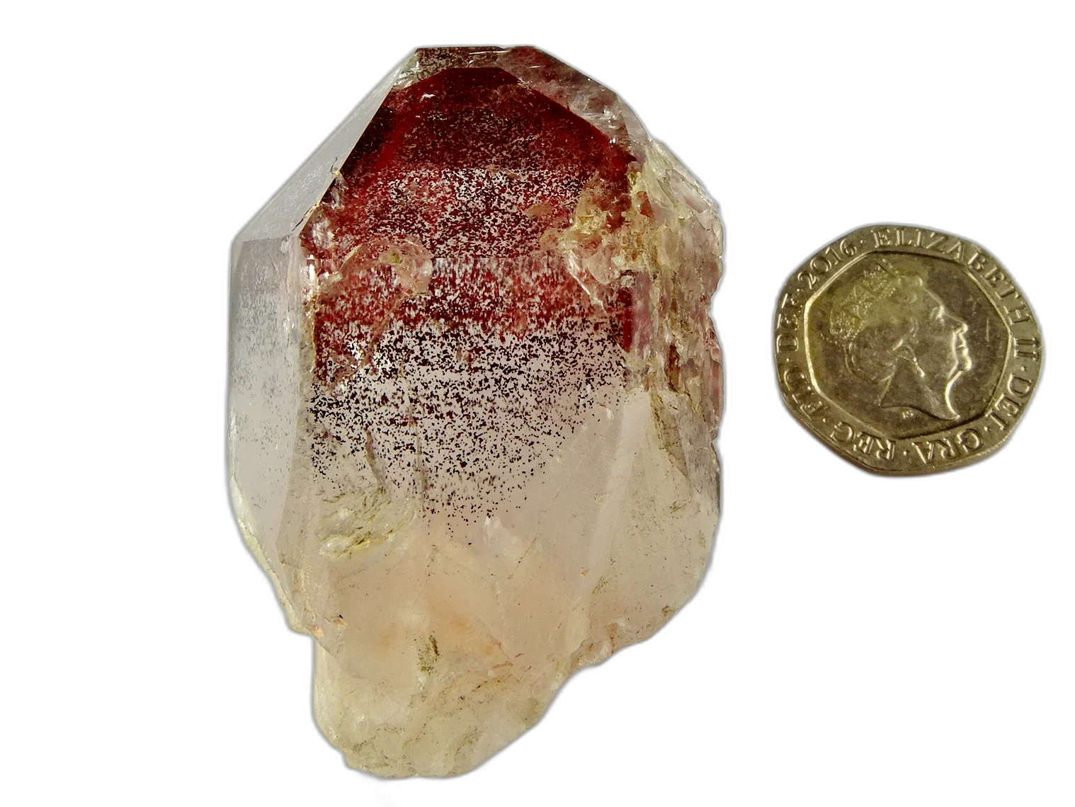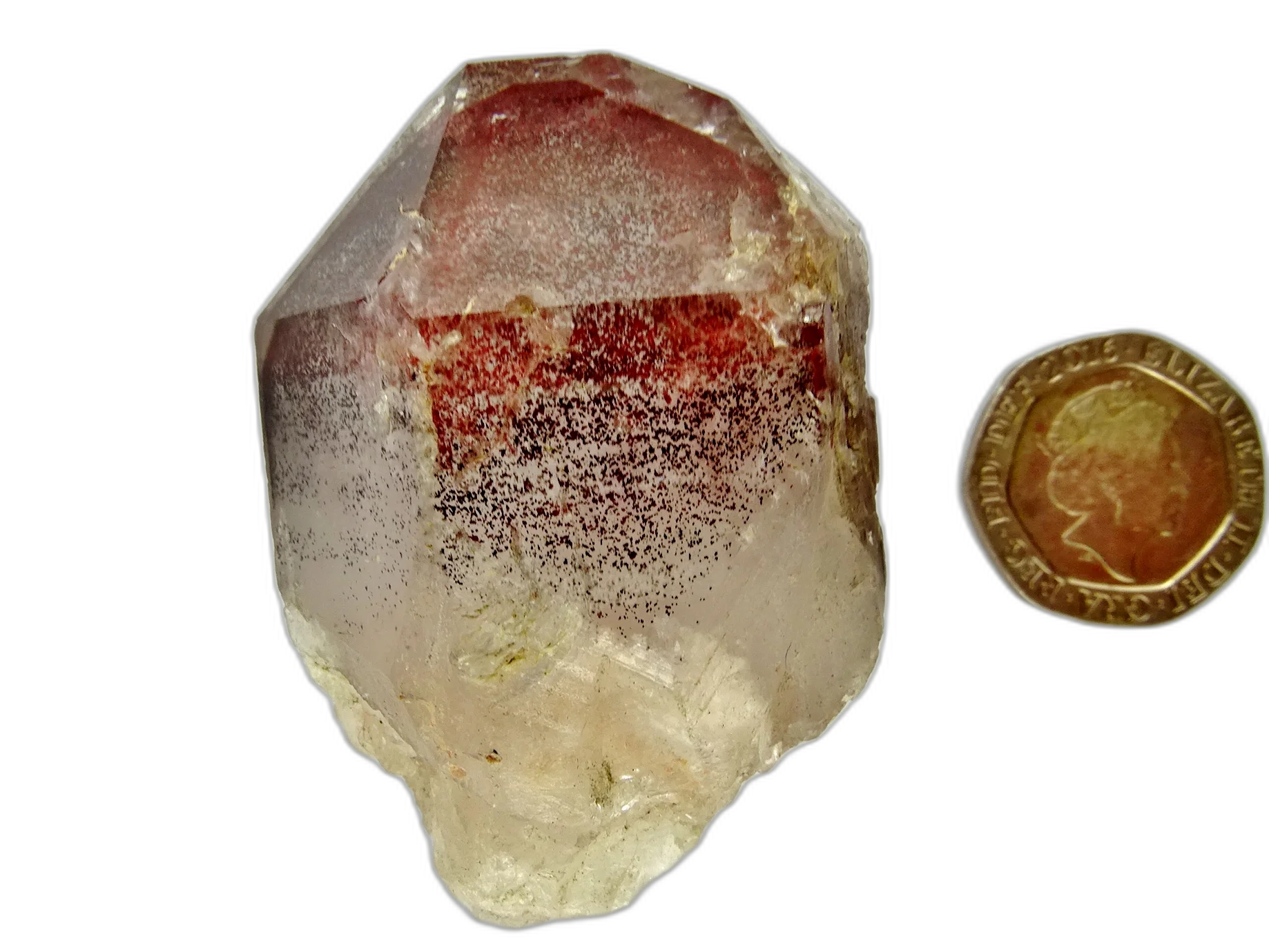 - Clear Quartz: part-polished point - Red Phantom (Congo)