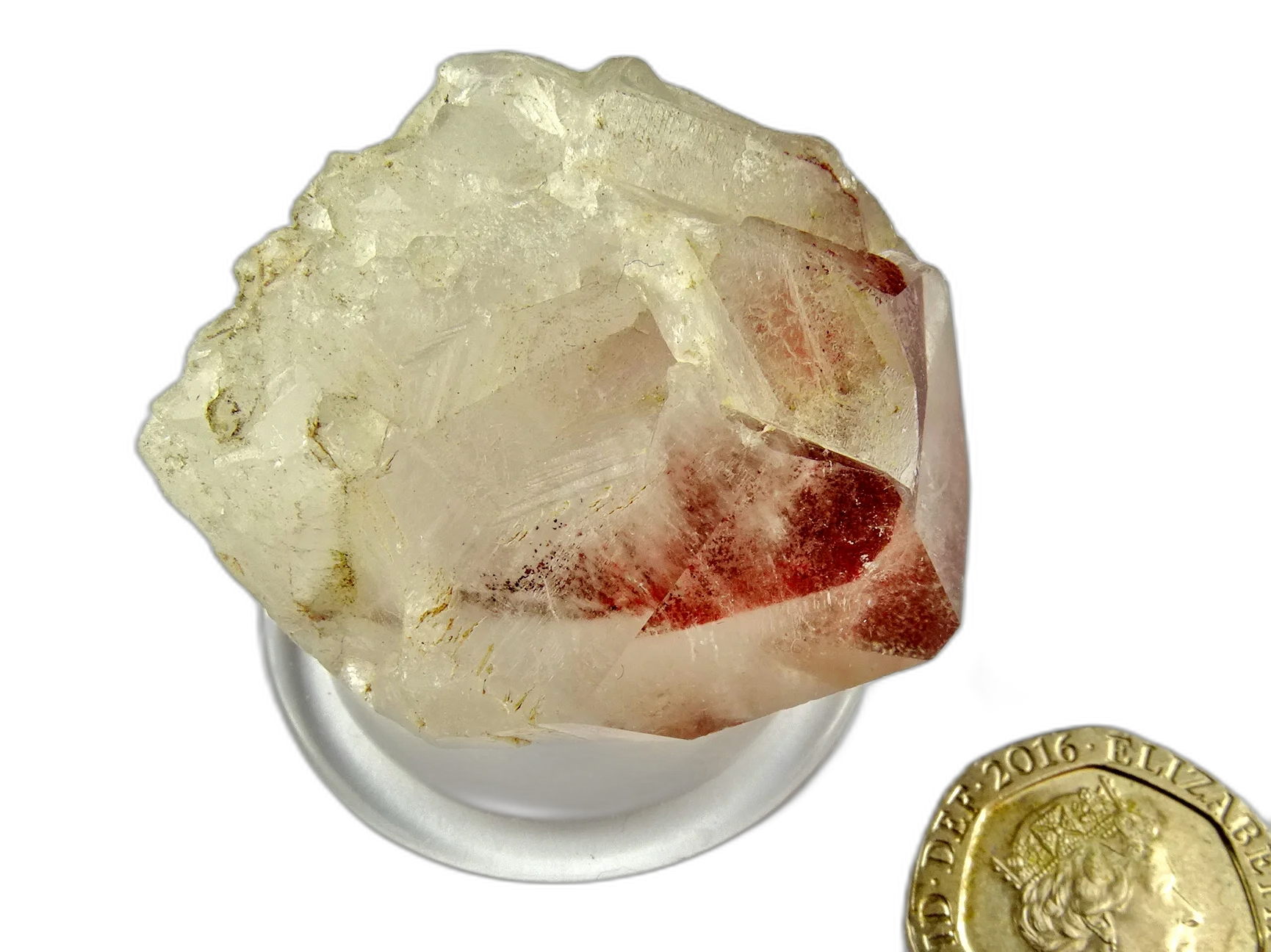 - Clear Quartz: part-polished point - Red Phantom (Congo)